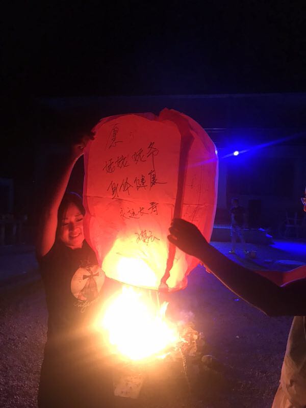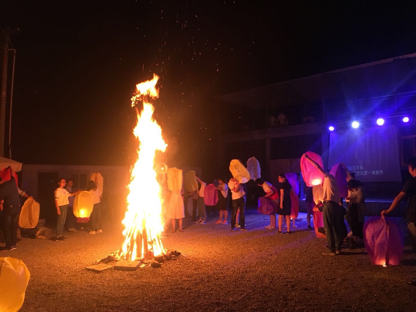 走過(guò)驚險(xiǎn)刺激的玻璃棧道,回去吃個(gè)晚飯壓壓驚。 團(tuán)建活動(dòng)part 3:篝火晚會(huì) 篝火晚會(huì)可是本次團(tuán)建中“小芯”最期待的環(huán)節(jié)呢!大家圍坐在農(nóng)家小院,點(diǎn)燃篝火,伴著美妙的音樂(lè),放飛寫滿自己心愿的孔明燈。
